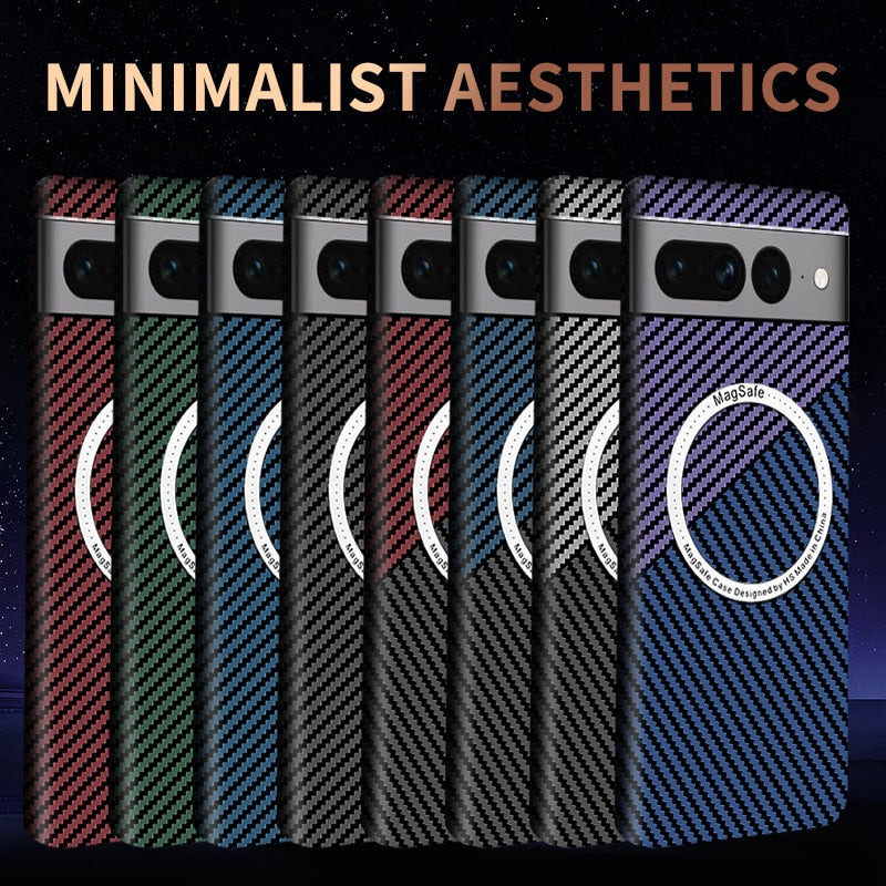 Elevate your Google Pixel with a premium carbon fiber case designed for wireless charging compatibility. This sleek, lightweight cover combines cutting-edge style with robust protection, keeping your Pixel 7 series safe from daily hazards.