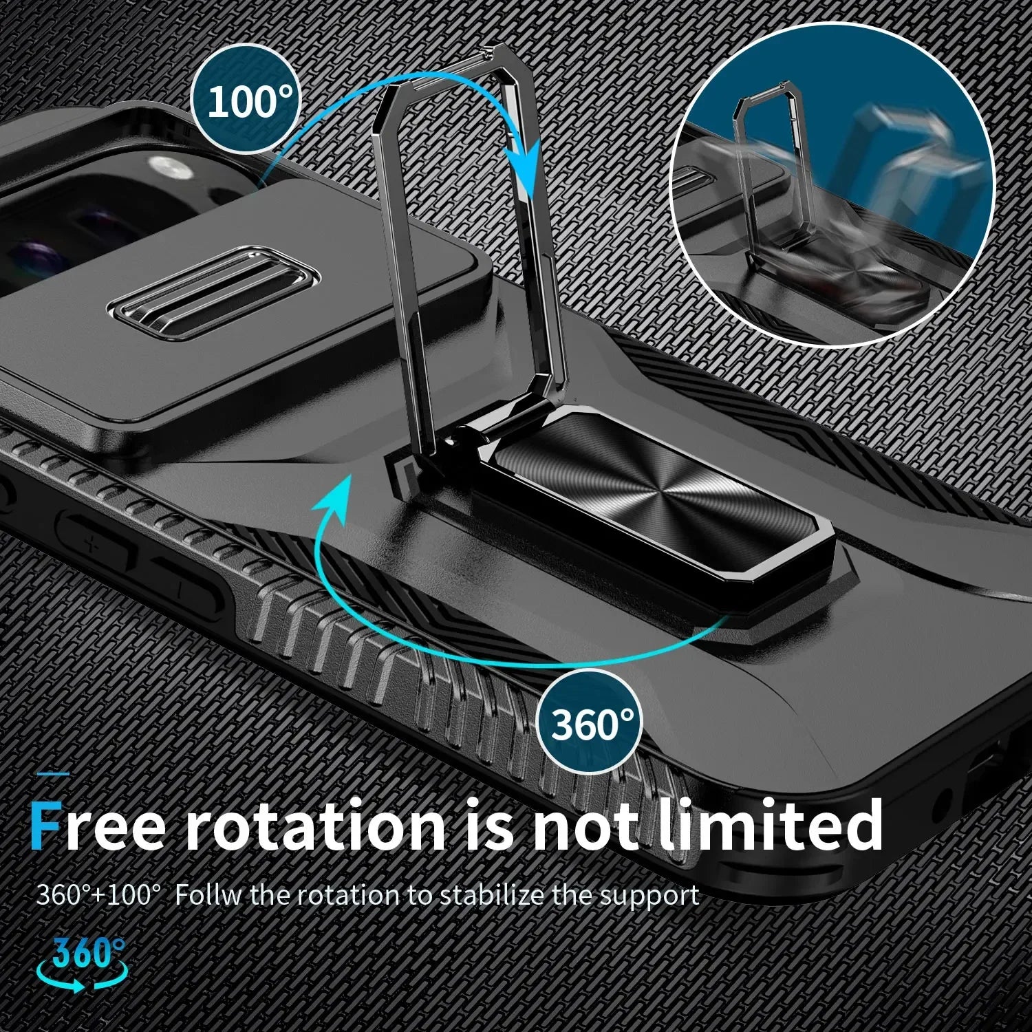 Crafted from high-quality TPU and reinforced polycarbonate, this case offers military-grade shock absorption and scratch resistance. The smooth-sliding camera cover shields your lens from scratches and dust, while precise cutouts provide seamless access to buttons, ports, and other features for uninterrupted functionality.